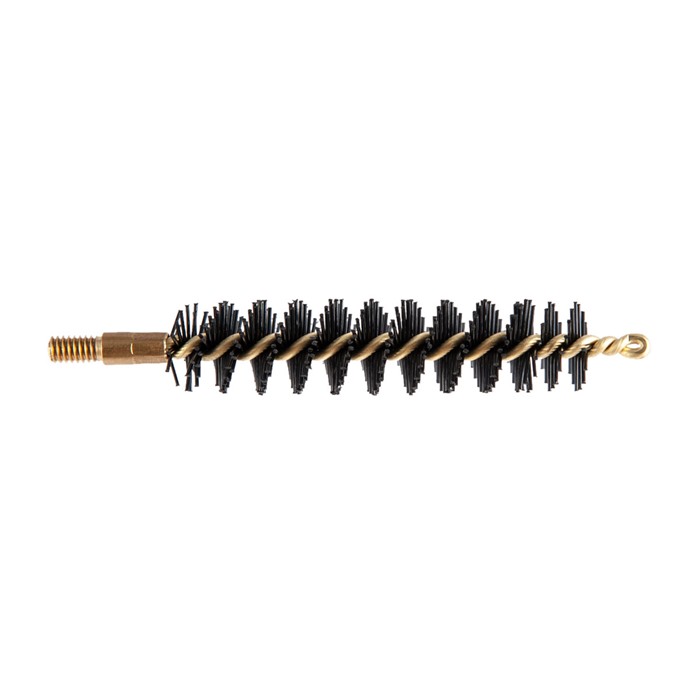 Les nettoyants à base d'ammoniaque et d'huile ne "mangent" pas ou ne dissolvent pas ces poils comme c'est le cas avec les brosses en bronze. De plus, les brosses à pistolet en nylon sont environ 1" plus courtes que les brosses à fusil.