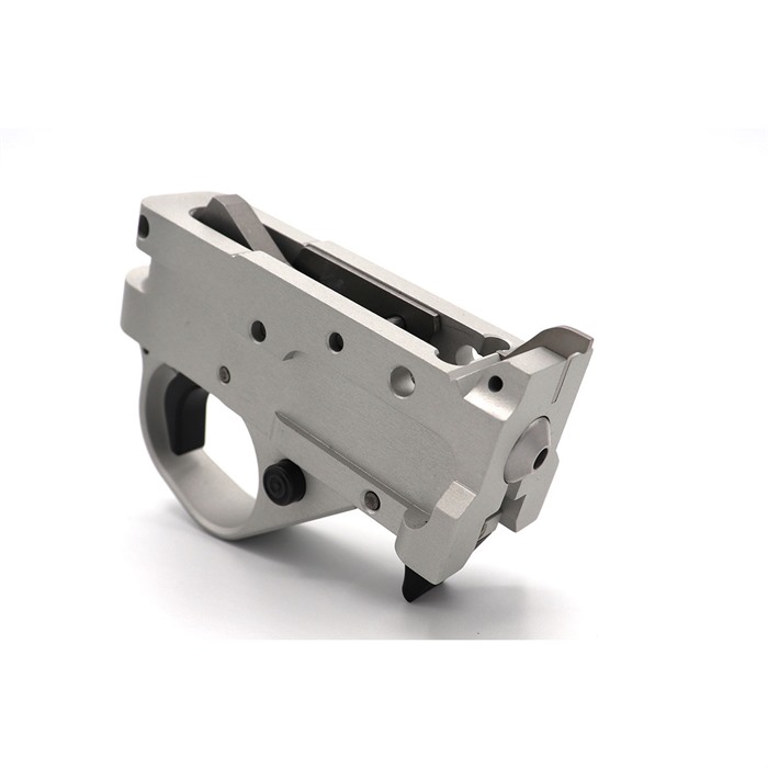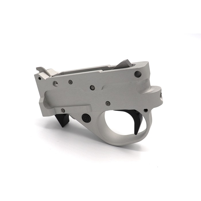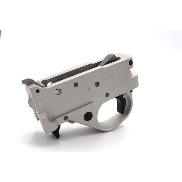 Ce déclencheur aftermarket pour le 10/22 est conçu pour s'ajuster de 1,5 livres à 5 livres avec un simple tour de vis. Il est proposé en finition mate sans reflet, en aluminium anodisé argent ou noir, avec notre système de libération automatique du verrou et un levier de chargeur interchangeable repensé.
