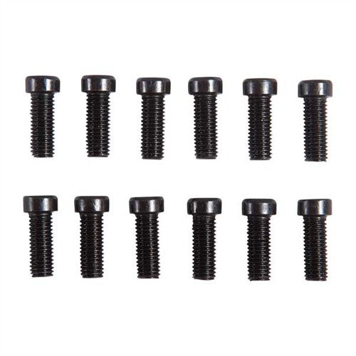 Fabriqué pour nous aux États-Unis selon les mêmes spécifications de tête/forme que les vis de base de viseur à fente. Socket de 3/32". Finition bleue. Le kit comprend : 168 vis, une boîte de kit compartimentée, des pinces, un gabarit de vérification/raccourcissement et un tableau montrant les bases/anneaux/ribans, etc., compatibles avec les vis. Les recharges sont vendues par paquet de 12.