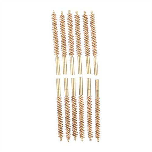SPECS: Bristles: Phosphor bronze. Shank: Brass, looped and wound. Rifle: 3½ (8.5cm) OAL. Pistol: 2-3⁄8 (6cm) OAL. Calibers .22 to 6.5mm have 8-36 female threads. Calibers .270 to .50BMG have 12-28 female threads.