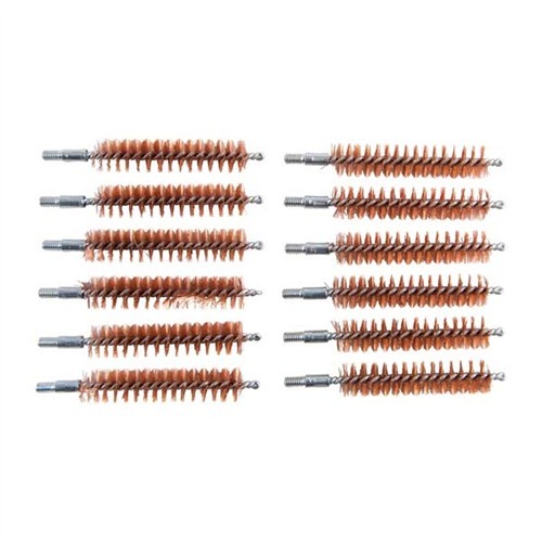 Since darn near as many bore brushes get used in the shop as get sold, we’ve packed these custom-made, top quality brushes in bulk paks to make them more convenient and less expensive. The shank is one-piece, looped and wound (not two, twisted together and chopped off). Bronze Bore Brushes - Best phosphor bronze scrubbing wire, for long life, thorough cleaning. SPECS: Bristles: Available in bronze. Shank: Steel, looped and wound. Rifle: 3.26” (8.3cm) OAL, .17 and.20 caliber 5-40 threads, all others 8-32 thread.