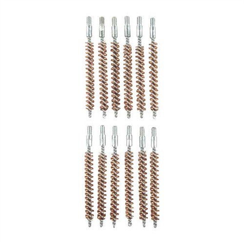 Since darn near as many bore brushes get used in the shop as get sold, we’ve packed these custom-made, top quality brushes in bulk paks to make them more convenient and less expensive. The shank is one-piece, looped and wound (not two, twisted together and chopped off). Bronze Bore Brushes - Best phosphor bronze scrubbing wire, for long life, thorough cleaning. SPECS: Bristles: Available in bronze. Shank: Steel, looped and wound. Rifle: 3.26” (8.3cm) OAL, .17 and.20 caliber 5-40 threads, all others 8-32 thread.