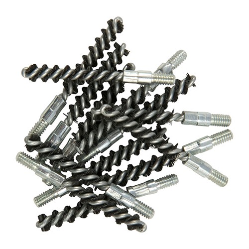 Since darn near as many bore brushes get used in the shop as get sold, we’ve packed these custom-made, top quality brushes in bulk paks to make them more convenient and less expensive. The shank is one-piece, looped and wound (not two, twisted together and chopped off). Nylon Bore Brush - New generation bore cleaners attack copper and bronze-based bullet jacket fouling aggressively and are just as hard on bronze cleaning brushes. Our nylon brushes stand up to these super cleaners and won’t cause accuracy-ruining scratches. One-piece, looped and wound steel shanks (except Black Powder (BP) series, .17 caliber, and .20 caliber, which have brass shanks). SPECS: Bristles: Available in nylon. Shank: Steel, looped and wound. Overall Length: 2-1/8 (5.4cm) Thread: 17 caliber 5-40 thread, all others 8-32 thread