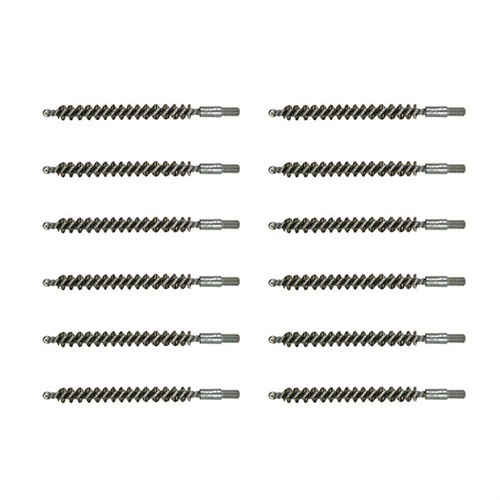 Since darn near as many bore brushes get used in the shop as get sold, we’ve packed these custom-made, top quality brushes in bulk paks to make them more convenient and less expensive. The shank is one-piece, looped and wound (not two, twisted together and chopped off). Stainless Steel Bore Brush - For severely leaded, fouled or rusted bores, the aggressive cleaning action of a stainless steel brush can help get them clean. However, the aggressive action accelerates wear, and regular use can shorten barrel life. SPECS: Bristles: Available in stainless steel. Shank: Steel, looped and wound. Overall length: 3.27" (8.3cm) Threads: .17 and.20 cal. 5-40 threads, all others 8-32 thread.