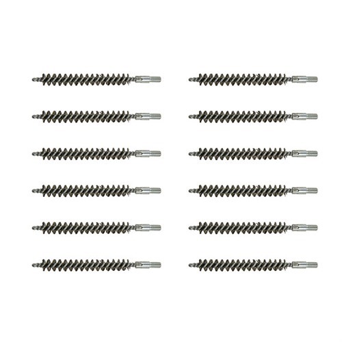Since darn near as many bore brushes get used in the shop as get sold, we’ve packed these custom-made, top quality brushes in bulk paks to make them more convenient and less expensive. The shank is one-piece, looped and wound (not two, twisted together and chopped off). Stainless Steel Bore Brush - For severely leaded, fouled or rusted bores, the aggressive cleaning action of a stainless steel brush can help get them clean. However, the aggressive action accelerates wear, and regular use can shorten barrel life. SPECS: Bristles: Available in stainless steel. Shank: Steel, looped and wound. Overall length: 3.27" (8.3cm) Threads: .17 and.20 cal. 5-40 threads, all others 8-32 thread.