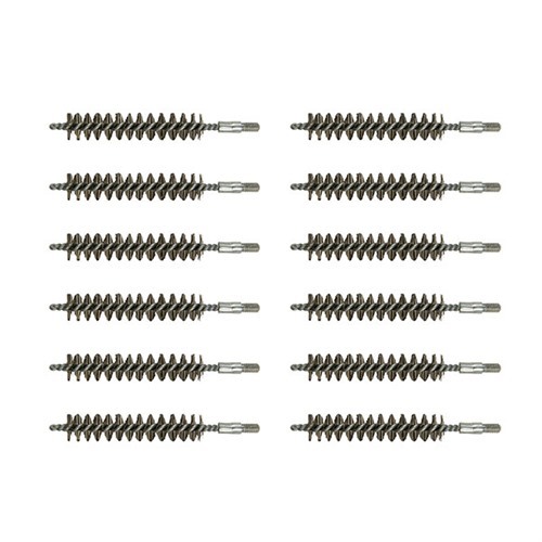 Since darn near as many bore brushes get used in the shop as get sold, we’ve packed these custom-made, top quality brushes in bulk paks to make them more convenient and less expensive. The shank is one-piece, looped and wound (not two, twisted together and chopped off). Stainless Steel Bore Brush - For severely leaded, fouled or rusted bores, the aggressive cleaning action of a stainless steel brush can help get them clean. However, the aggressive action accelerates wear, and regular use can shorten barrel life. SPECS: Bristles: Available in stainless steel. Shank: Steel, looped and wound. Overall length: 3.27" (8.3cm) Threads: .17 and.20 cal. 5-40 threads, all others 8-32 thread.