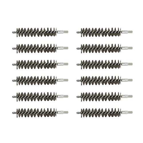 Since darn near as many bore brushes get used in the shop as get sold, we’ve packed these custom-made, top quality brushes in bulk paks to make them more convenient and less expensive. The shank is one-piece, looped and wound (not two, twisted together and chopped off). Stainless Steel Bore Brush - For severely leaded, fouled or rusted bores, the aggressive cleaning action of a stainless steel brush can help get them clean. However, the aggressive action accelerates wear, and regular use can shorten barrel life. SPECS: Bristles: Available in stainless steel. Shank: Steel, looped and wound. Overall length: 3.27" (8.3cm) Threads: .17 and.20 cal. 5-40 threads, all others 8-32 thread.