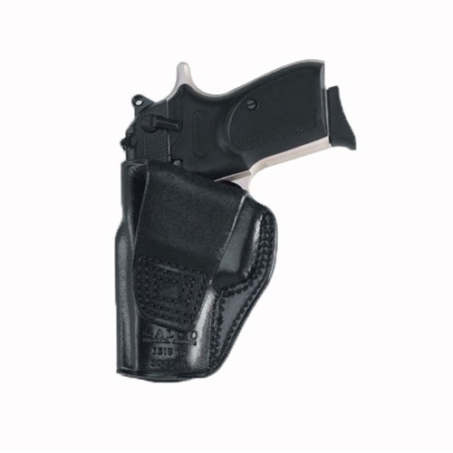 Galco’s Stinger™ belt holster was designed with the KISS principle in mind. Made to carry a small semiautomatic pistol or double-acton revolver behind the strongside hip, the Stinger’s open top and forward cant allow a fast, easy drawstroke. Safety, security and stealth are all addressed with a covered trigger guard, deep molding and a tunnel-style belt loop that takes up little belt space compared to a pancake-type holster. The Stinger is constructed of premium saddle leather, fits belts up to 1 1/2” wide.