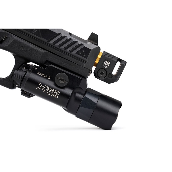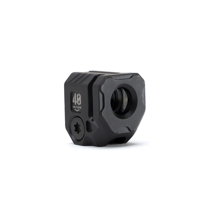 Le QUAD est un compensateur de pistolet de la gamme Strike Micro Threaded Comp (SMTC) qui fonctionne avec presque toutes les tailles de glissières utilisant un canon fileté avec des filets 1/2"x28 (TPI). Grâce à ses larges parois frontales, il redirige les gaz pour atténuer le recul ressenti et réduire le relèvement du canon.