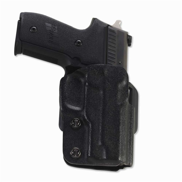 - Placez l'arme dans le holster en vous assurant qu'elle est bien maintenue par les unités de tension.