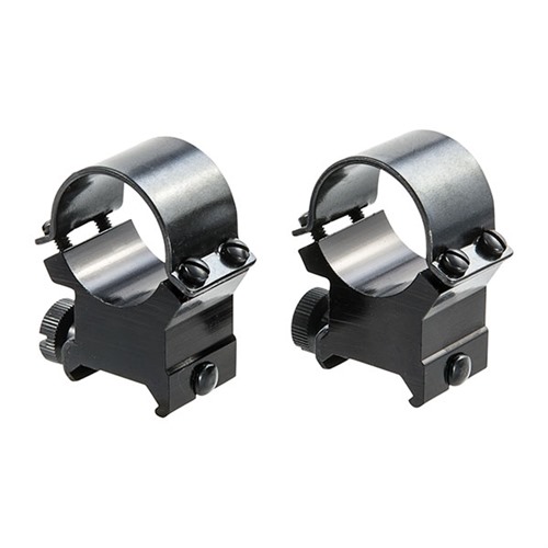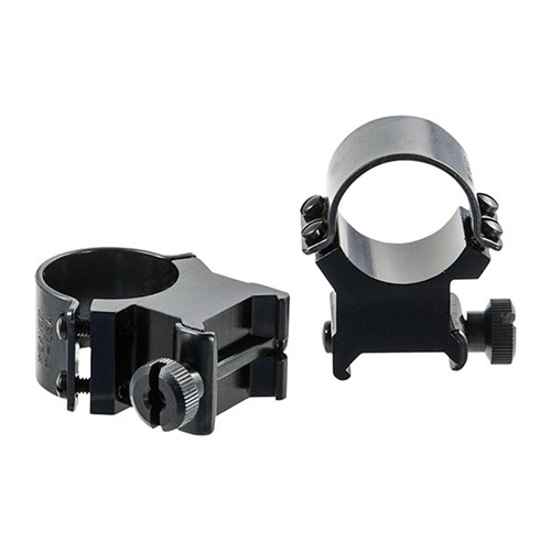 Steel caps with two screws per side provide extra strong, 4-screw, clamping power. Helps ensure that reticle stays square while tightening top screws. Large clamp nut locks rings to base, provides easy scope installation, removal; and accurate return to zero after re-installation.