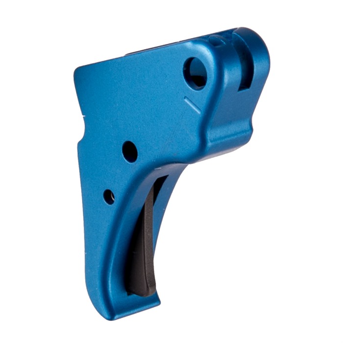 Hard anodized aluminum trigger compared to the stock trigger is stiffer and does not cause sideways trigger movement causing accuracy to suffer.