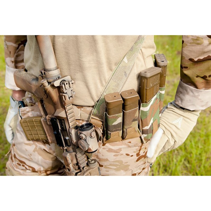 Blue Force Gear’s Ten-Speed M4 Belt Pouch combines combat-proven, military-grade elasticized fabaric with a belt attachment system that conveniently holds one M4 magazine or similar sized. High Rise pouch holds sits higher on the belt for maximum concealability under a jacket. Low Rise holds a magazine lower on the belt for easier access during a reload. Common features of the Blue Force Gear Ten-Speed M4 Belt Pouches include: Accepts one 30-round AR-15 / M4 magazine Can also be used to carry bandages, small radios, flash bangs, and similar sized items May be oriented vertically (belts up to 2" wide) or horizontally (belts up to 1.25" wide) The Ten-Speed M4 Belt Pouch uses a hook-and-loop system to attach on to trouser belts, rigger’s belts, or duty belts. It’s designed to straddle a belt loop, preventing inadvertent movement rotation.