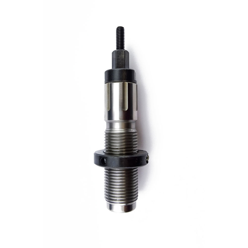 The guide sleeve and the body of this reloading-die are perfectly matched to ensure exact axial alignment of the cartridge during the sizing process.
