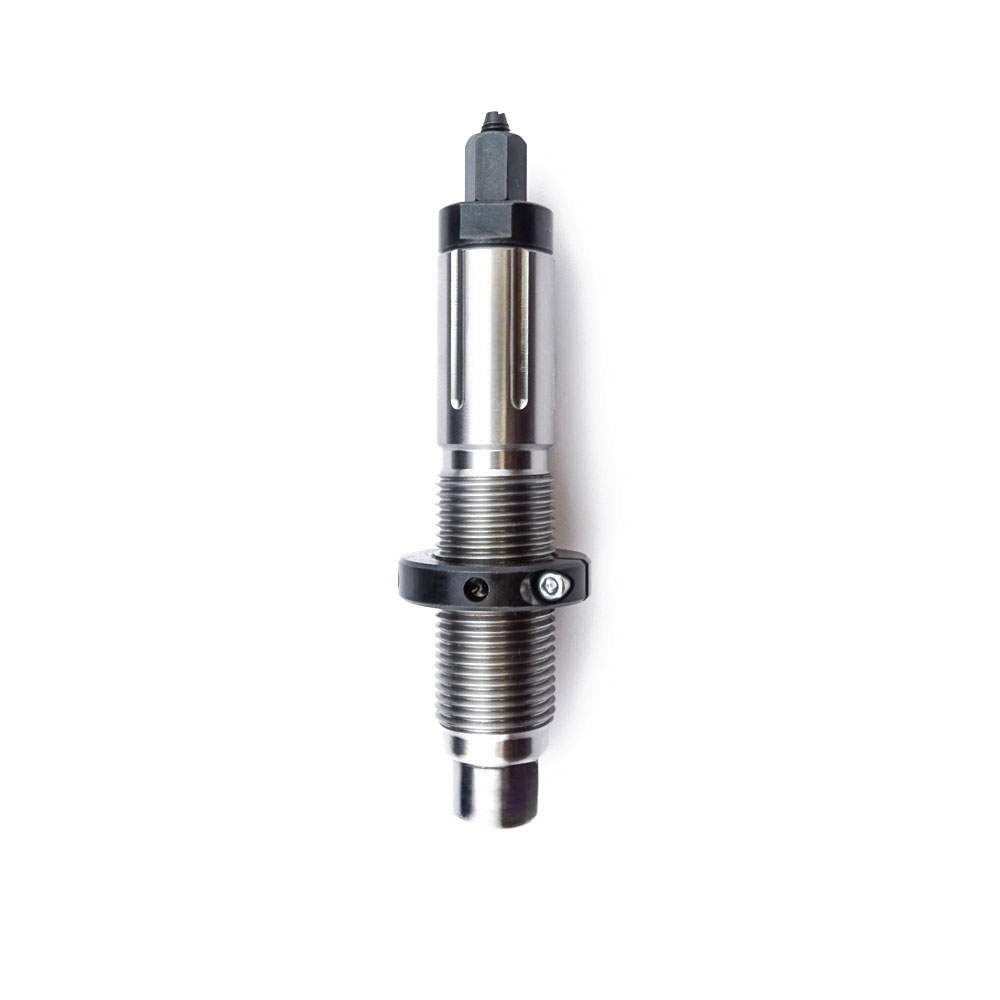 The guide sleeve and the body of this reloading-die are perfectly matched to ensure exact axial alignment of the cartridge during the sizing process.