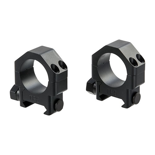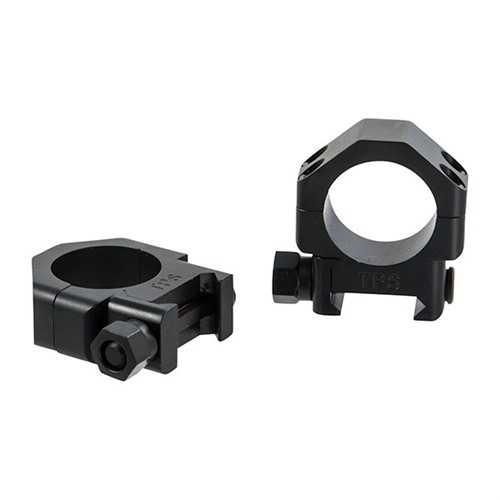TSR "W" Series Rings, precisely machined from an alloy steel billet, with tolerances held to .0002", give maximum scope/ring contact. Holds scope securely against recoil. Four-screw cap lets you align the reticle, tighten the left side of the cap, then the right side without the scope rotating. Radiused edges and corners help prevent snagging while providing attractive appearance. Large, clamp-nut lets you torque rings to Weaver-style or Mil-STD 1913 (Picatinny) bases.