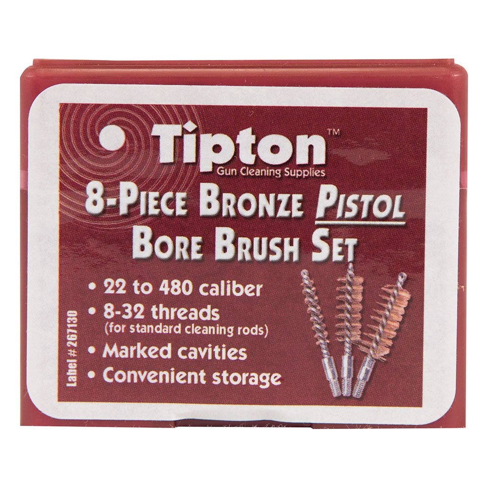TIPTON Jeu de 8 brosses de canon pour arme de poing, soies bronze
