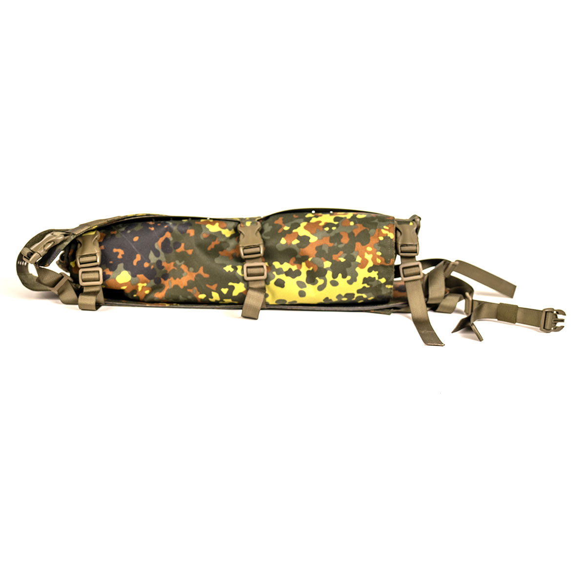 726529841954 The GTS Tripod Field Rig is designed for users who want to carry their tripod as part of an integrated system - not as an afterthought. Built for mobility and adaptability, it combines transport solution, load-bearing platform, and shooting support in one purpose-driven design. Primarily configured as a dedicated tripod backpack, the Field Rig allows secure and balanced transport over longer distances. The reinforced carrying system keeps the tripod stable and close to the body, reducing movement and improving comfort during approach or repositioning. For more compact or vehicle-based operations, the Field Rig can also be carried as a shoulder bag. In addition, its MOLLE-compatible exterior allows it to be mounted directly onto a plate carrier or other MOLLE platforms, integrating seamlessly into existing load-bearing setups. This makes it equally suited for hunting, precision competition, and professional field applications. Beyond transport, the Field Rig unfolds into a functional shooting mat. Once deployed, it provides a clean and durable surface for prone shooting positions, protecting both shooter and equipment from moisture, dirt, and rough terrain. This dual-purpose design eliminates the need to carry separate gear, reducing overall load while increasing efficiency. Constructed from durable, abrasion-resistant materials and designed with reinforced stitching throughout, the GTS Tripod Field Rig is built for demanding environments where reliability matters. One system. Multiple roles. No unnecessary gear.