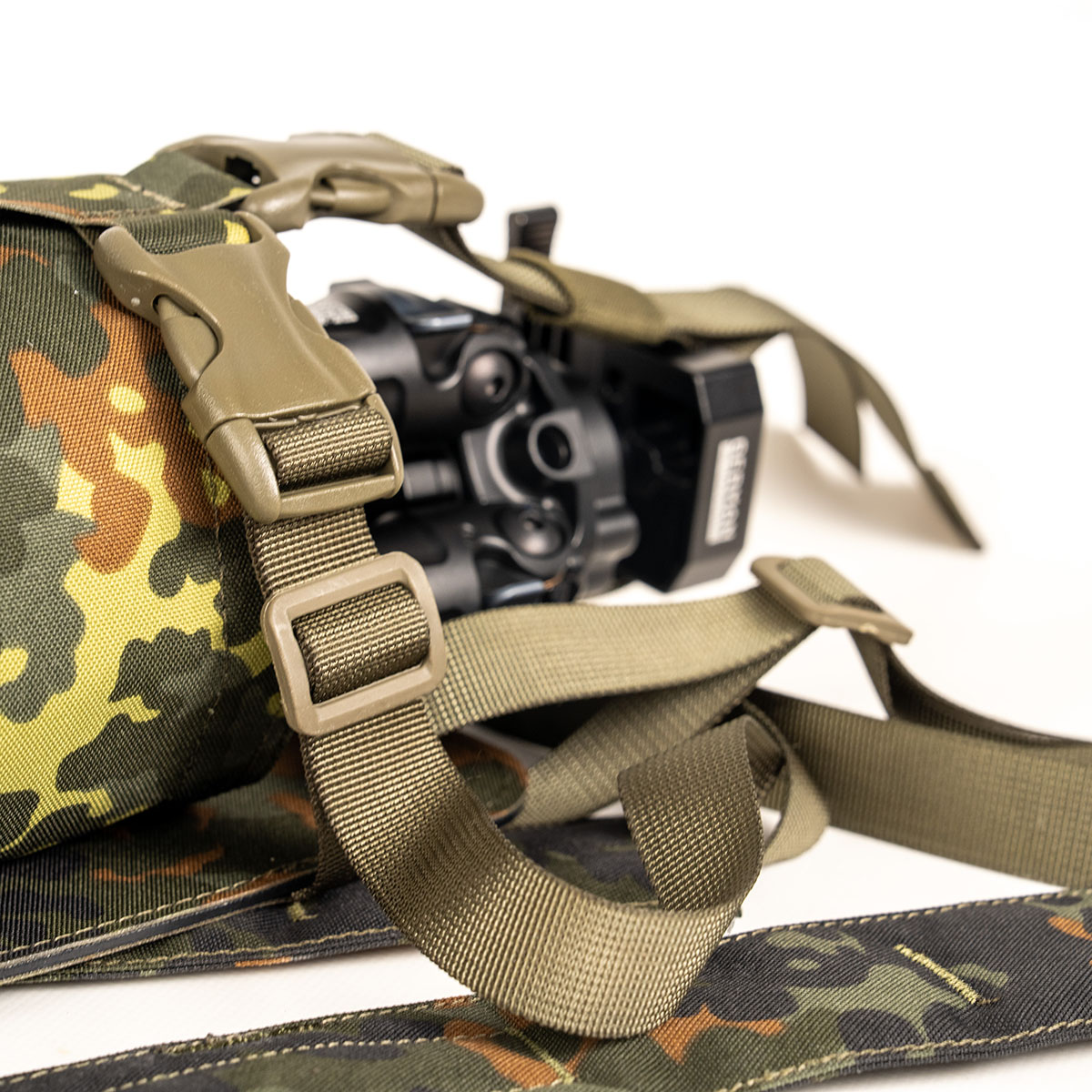 Construit à partir de matériaux durables et résistants à l'abrasion, et conçu avec des coutures renforcées tout au long, le GTS Tripod Field Rig est fait pour des environnements exigeants où la fiabilité est essentielle.
