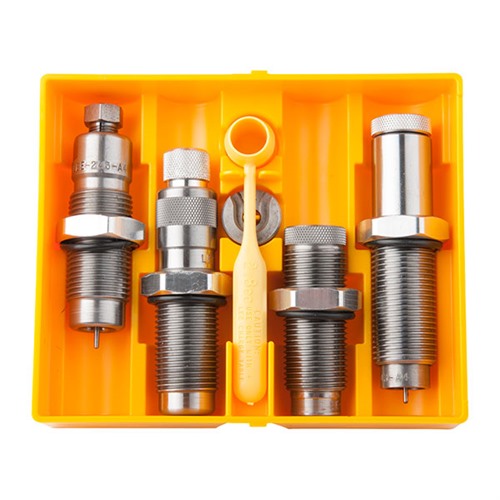 Choose this die set for maximum versatility. The set features a full length-resizing die to return brass to factory new dimensions, perfect for reloading brass fired in other guns. The Collet Neck sizing die is used on your fire formed brass giving you best possible accuracy. No case lube required and cases last almost forever. The Easy Adjust Dead Length Bullet seating die foolproofs the bullet seating adjustment, and assures perfect seating depth every time. The Factory Crimp die provides a secure crimp on bullets with or without a crimp groove. In most cases it helps accuracy by providing a uniform higher start pressure and gives the finished cartridge Factory like accuracy and dependability. The set is complete, with shell holder, powder measure and famous Lee load data featuring all common brands of powder organized in a easy to read logical format. Includes a full length sizer, collet necksizer, Easy Adjust Dead Length Bullet Seating Die & Factory Crimp Die.