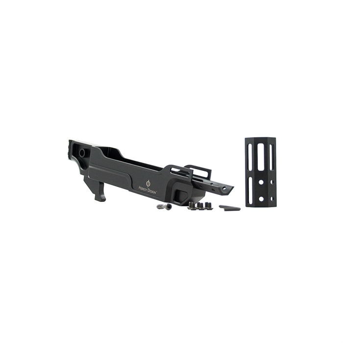 Discover the pinnacle of firearm enhancement with the Vendetta™ chassis system. Crafted from high-quality aluminum, this chassis not only enhances the aesthetics of your firearm but also delivers unparalleled durability and performance. The M-LOK® rail provides a versatile platform for mounting lights and other accessories, allowing you to customize your setup to suit your shooting needs. Ships with Chassis, Rail, Grip Insert, Grip Insert Screw, 6 Rail Screws, and 2 Allen Keys. FEATURES: Material: 6061 T6 Finish: MilSpec Type II Anodized Lightweight Design with Slim Profile (15 oz.) Free Float Rail with Centrally Positioned MLOK® Slots Machined-in QD Sockets Compatible with All Standard AR-style Grips 5° angled back rail for Folding Stocks or Braces Compatible with Fixed Barrel Ruger® 10/22® Pattern Barreled Actions Manufactured in the USA Limited Lifetime Warranty