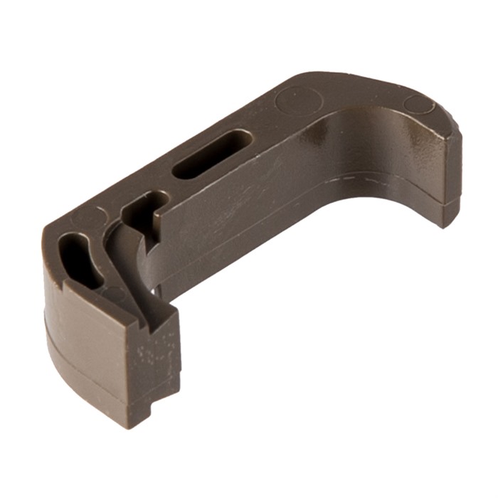 SPECS: Polymer composite, matte black. GMR-001 and GMR-001 GT fit Glock Models 17, 19, 22, 23, 24, 26, 27, 31, 32, 33, 34, and 35. GMR-001 is 3/64" longer than OEM magazine releases, with an overall length of 1.190" (stock release is 1.140"). GMR-002 and GMR-002 GT fit Glock Models 20, 21, 29, 30, does not fit Gen 4 or SF models with ambi or reversible safeties. Gen 4 Model fits Gen 4 17, 19, 22, 23, 26, 27, 31, 35. GMR-004 and GMR-004 BRN work only with Gen 4 models G20, 21, 29, 30 and 41.GMR-005 BLK fits model 42.