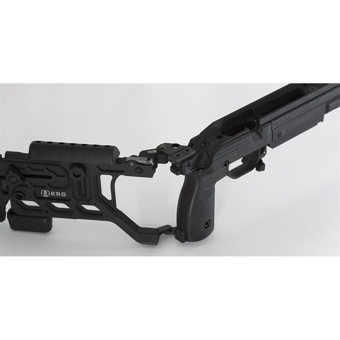 Les panneaux de prise modulaires de KRG permettent au tireur d'adapter l'ajustement de la crosse à sa main, ce qui, combiné aux autres réglages, permet d'obtenir une configuration de crosse exactement comme il se doit pour ce tireur particulier.
