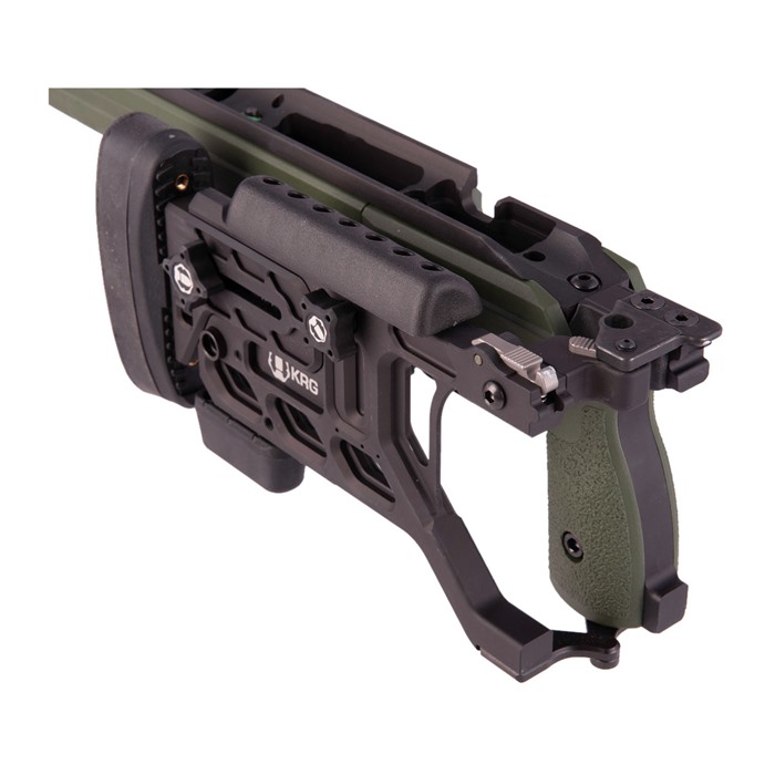 The KRG Whiskey-3 Chassis (W3C) is one of the premier chassis available for your bolt action precision rifle. The W3C combines precise aluminum bedding with tool-less adjustments, durability, and excellent ergonomics. Right out of the box it allows the use of AICS style magazines (not included) in your rifle without any special bottom metal. Numerous types of accessories can be added to the many attachment points, including handstops, sling mounts, rails, bipods, monopods, and more. KRG’s modular grip panels allow the shooter to tailor the fit of the stock to his/her hand which, combined with the other adjustments, yield a stock set up exactly as it needs to be for that particular shooter. The latest Generation (6) features a new length-of-pull locking mechanism that is a bit more streamlined than previous generations and allows for faster adjustments. Remington 700 long action chassis takes AICS pattern 3.850" length magazines.