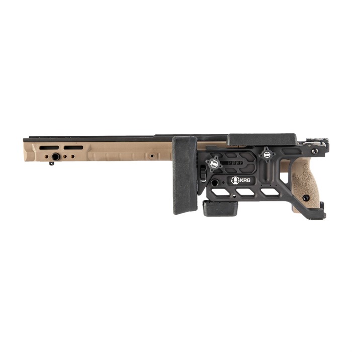 Dès sa sortie de la boîte, il permet l'utilisation de chargeurs de style AICS (non inclus) dans ton fusil sans aucun métal inférieur spécial. De nombreux types d'accessoires peuvent être ajoutés aux nombreux points de fixation, y compris des arrêts de main, des points d'attache pour sangles, des rails, des bipieds, des monopodes, et plus encore.