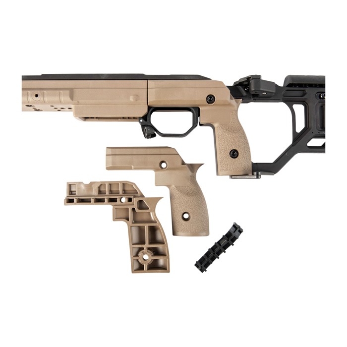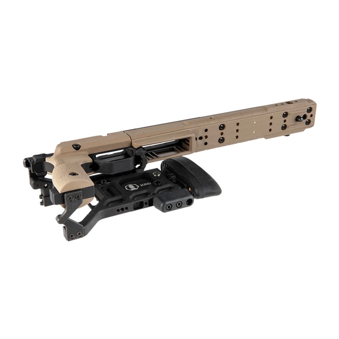 Les panneaux de prise modulaires de KRG permettent au tireur d'adapter la prise de la crosse à sa main, ce qui, combiné aux autres réglages, permet d'obtenir une crosse configurée exactement comme il se doit pour ce tireur particulier.