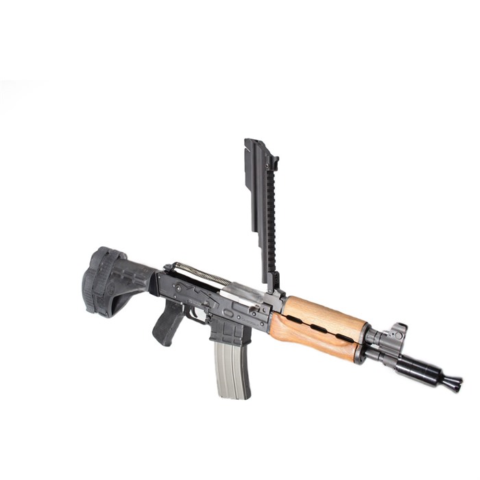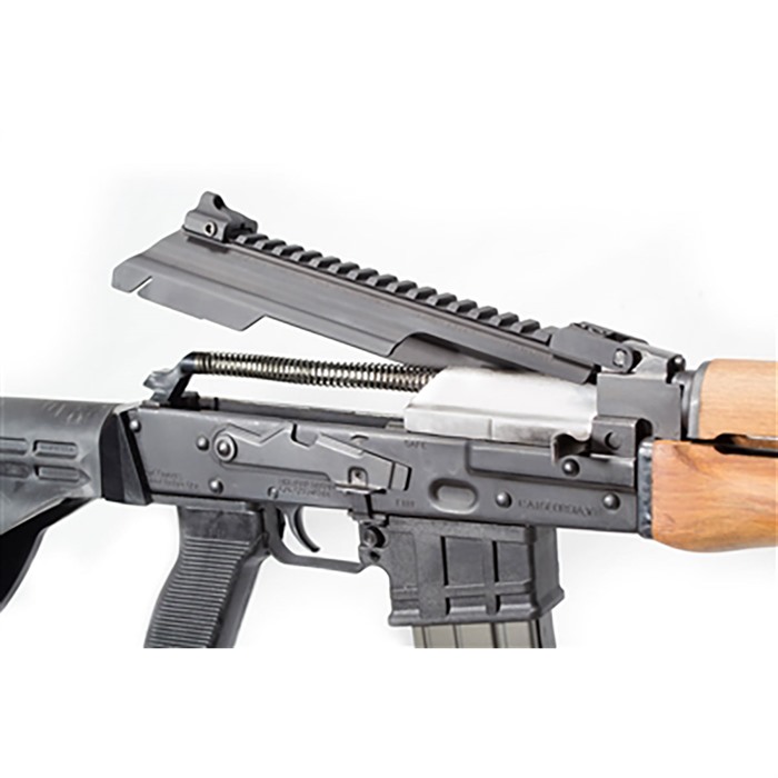 Keeping your shots on target is what it’s all about. Whether you require the quick target acquisition of a red dot or the range of a magnified optic, the Gen-3 Dog LegTM scope rail has you covered. Mounted directly over the receiver, the patented Dog LegTM scope rail with integral dust cover provides optimal balance, generous rail space, and protects delicate optics from barrel heat. The ingeniously simple and rugged design provides a rock solid mount for accuracy. The forward hinged cover with rear cam lock design preserves the AK’s field stripping qualities. OPTION NOTE: The M85/M92 Dog Leg Rail does NOT incorporate a quick detach feature. The weapon may be permanently modified for quick detach cover capability by drilling out the hinge pin hole in both the weapon and top cover from 4mm to 0.250 inches. Requires the additional purchase of the optional Enhanced Push Button Take Down Pin.